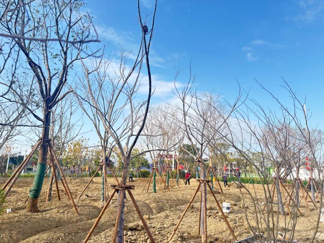 近日,万新数字产业园建设全面进入收尾阶段,园区配套绿化工程等同步铺开。