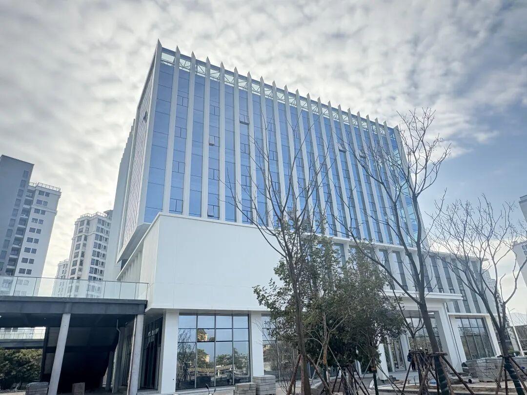 陈运 摄 这座集科技研发、产业孵化、生态办公于一体的数字产业载体已展露清晰轮廓,以崭新姿态亮相。 日前,记者在项目现场看到,园区外立面装修已全部完工,玻璃幕墙搭配现代装饰线条在阳光下尽显简约大气的科技质感,既注重建筑的视觉美学,又兼顾节能实用功能。